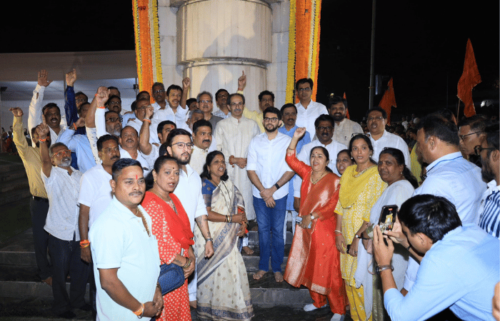 संयुक्त महाराष्ट्र चळवळीत मुंबईसह महाराष्ट्र निर्मितीसाठी आपल्या प्राणांचे बलिदान देणाऱ्या हुतात्म्यांच्या स्मृतीदिनानिमित्त शिवसेना (उद्धव बाळासाहेब ठाकरे) पक्षप्रमुख उद्धव ठाकरे यांनी हुतात्मा चौक येथे हुतात्म्यांना अभिवादन केले. यावेळी युवासेनाप्रमुख शिवसेना नेते आमदार आदित्य ठाकरे, शिवसेना नेते खासदार अरविंद सावंत, शिवसेना नेते-सचिव खासदार अनिल देसाई, शिवसेना नेते-सचिव विनायक राऊत, शिवसेना सचिव साईनाथ दुर्गे तसेच आमदार, विभागप्रमुख आणि इतर पदाधिकारी-शिवसैनिक उपस्थित होते.
